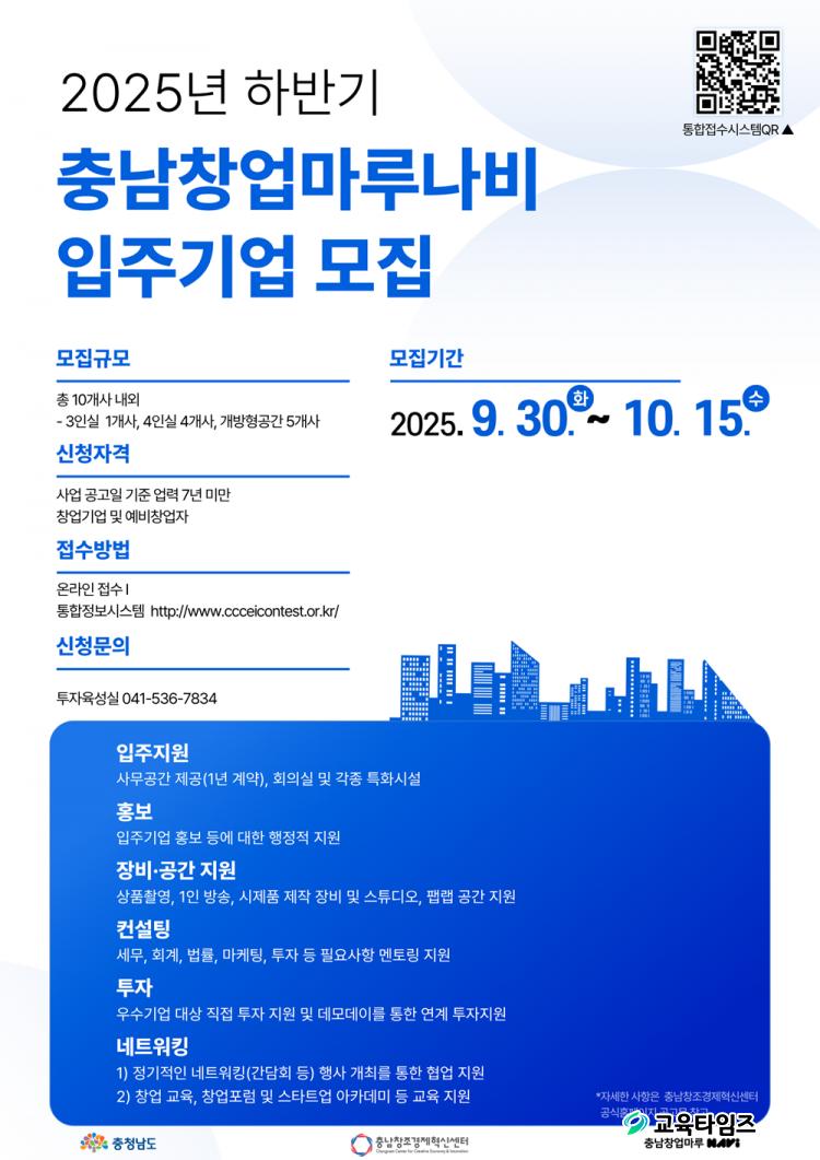 [±³À°Å¸ÀÓÁî/°æÁ¦] °¡µÎÈ£ ±âÀÚ = (Àç)Ãæ³²Ã¢Á¶°æÁ¦Çõ½Å¼¾ÅÍ(ÀÌÇÏ Ãæ³²Çõ½Å¼¾ÅÍ)´Â ¿À´Â 10¿ù 15ÀϱîÁö 2025³â ÇϹݱâ Ãæ³²Ã¢¾÷¸¶·ç³ªºñ ÀÔÁÖ±â¾÷À» ¸ðÁýÇÑ´Ù°í ¹àÇû´Ù. À̹ø ¸ðÁýÀº Çõ½ÅÀûÀÎ ¾ÆÀ̵ð¾î¿Í ¼ºÀå ÀáÀç·ÂÀ» Áö´Ñ ½ºÅ¸Æ®¾÷À» ¹ß±¼ÇØ ¾ÈÁ¤ÀûÀÎ º¸À° ȯ°æÀ» Á¦°øÇϰí, ±â¾÷ÀÇ Áö¼ÓÀûÀÎ ¼ºÀåÀ» Áö¿øÇϱâ À§ÇØ ÃßÁøµÈ´Ù.