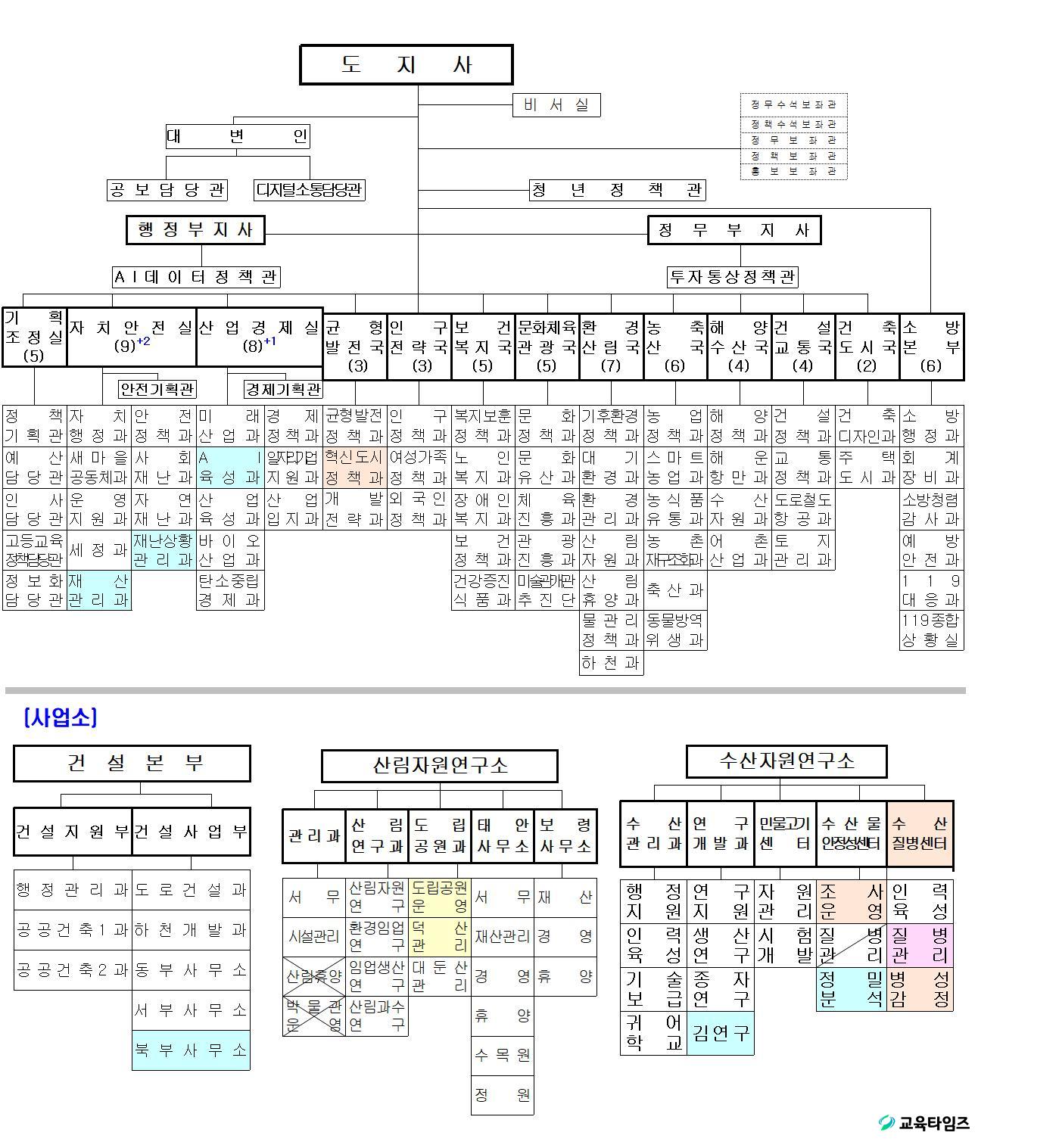 Á¶Á÷°³Æí¾È¿¡ µû¸£¸é, µµ º»Ã» ±â±¸´Â 16°³ ½Ç±¹(2±âȹ°ü Æ÷ÇÔ) 69°³ °ú 312°³ ÆÀ¿¡¼­ 72°³ °ú 321°³ ÆÀÀ¸·Î 3°³ °ú 9°³ ÆÀÀ» È®´ë¡¤½Å¼³ÇÑ´Ù.