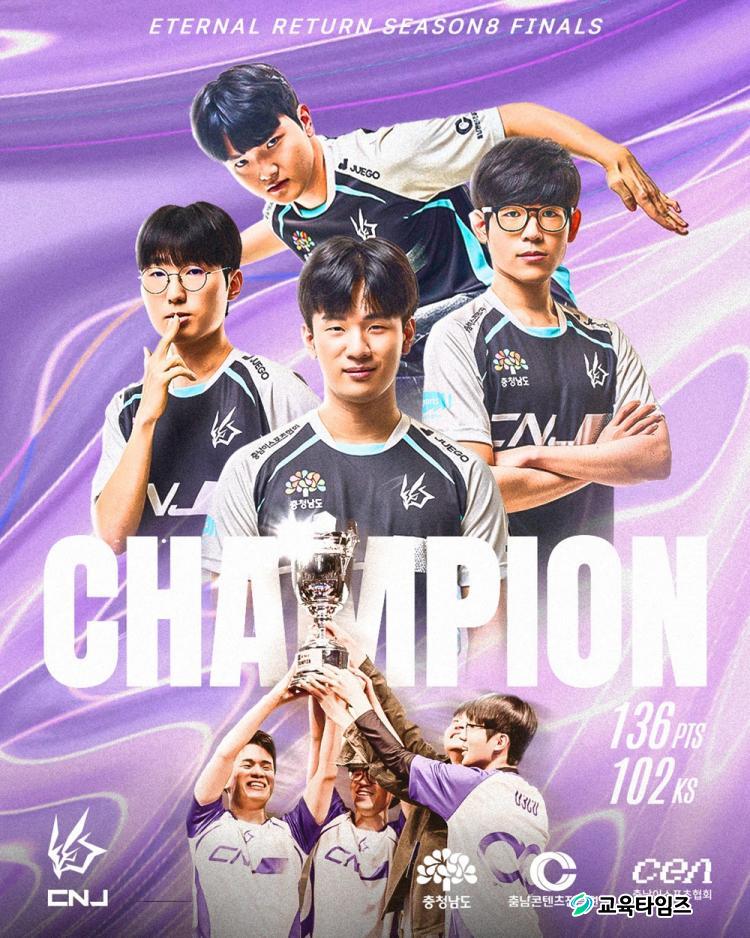 [±³À°Å¸ÀÓÁî/»çȸ] °¡µÎÈ£ ±âÀÚ = (Àç)Ãæ³²ÄÜÅÙÃ÷ÁøÈï¿ø(¿øÀå ±è°î¹Ì)Àº ÃæÃ»³²µµ¸¦ ´ëÇ¥ÇÏ´Â À̽ºÆ÷Ã÷ °ÔÀÓ´Ü ¡®CNJ Esports(ÀÌÇÏ CNJ)¡¯°¡ 2025³â 10¿ù 12ÀÏ(ÀÏ) ´ëÀü µå¸² ¾Æ·¹³ª¿¡¼ ¿¸° ÀÌÅͳΠ¸®ÅÏ ¸¶½ºÅÍÁî ½ÃÁð8 ÆÄÀ̳ο¡¼ ¿ì½ÂÀ» Â÷ÁöÇß´Ù°í ¹àÇû´Ù. À̹ø ´ëȸ´Â ½ÃÁð ¿Â¶óÀÎ ¼±¼ö±ÇÀ» ¶Õ°í ¿Ã¶ó¿Â 12°³ ÆÀÀÌ Âü¿©ÇÑ °á½ÂÀüÀ¸·Î, CNJ´Â ¸¶Áö¸· ¶ó¿îµå±îÁö ¾ÈÁ¤ÀûÀÎ °æ±â ¿î¿µ°ú Ź¿ùÇÑ Àü¼ú ¼öÇàÀ¸·Î Á¤»ó¿¡ ¿Ã¶ú´Ù.