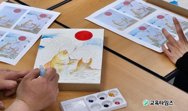 Âü¿© û³âµéÀº °»çÀÇ ¾È³»¿¡ µû¶ó ¾à¸®µµ ¹Ø±×¸²¿¡ Á÷Á¢ »öÀ» Ä¥Çϸç ÀüÅë ¹ÎÈÀÇ »ö°¨°ú Ç¥Çö±â¹ýÀ» üÇèÇß°í, À̸¦ ÅëÇØ ¿¹¼úÀû ¸ôÀÔ°ú Á¤¼Àû ¾ÈÁ¤ÀÇ ½Ã°£À» °¡Á³´Ù.