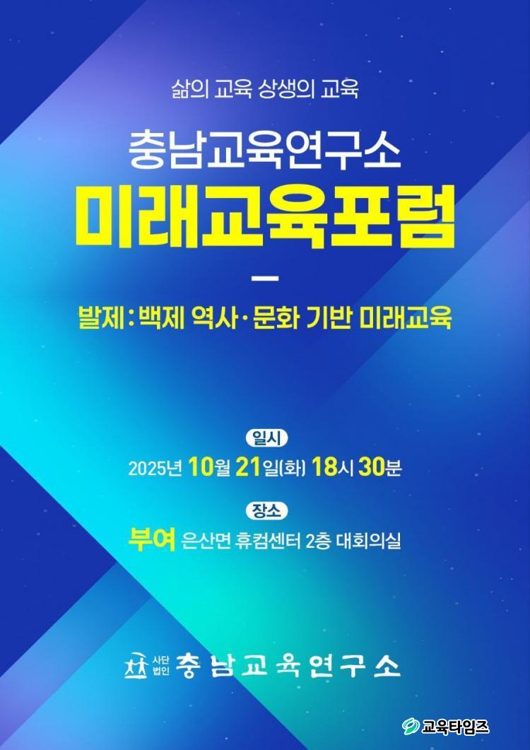 [±³À°Å¸ÀÓÁî/»çȸ] °¡µÎÈ£ ±âÀÚ = Ãæ³²±³À°¿¬±¸¼Ò(¼ÒÀå À̺´µµ)´Â ¿À´Â 21ÀÏ(È) ¿ÀÈÄ¿¡, ºÎ¿© Àº»ê¸é ÈÞÄļ¾ÅÍ 2Ãþ ´ëȸÀǽǿ¡¼ ¡®¹éÁ¦ ¿ª»ç¡¤¹®È ±â¹Ý ¹Ì·¡±³À°¡¯À» ÁÖÁ¦·Î ¹Ì·¡±³À°Æ÷·³À» °³ÃÖÇÑ´Ù°í ¹àÇû´Ù. ÀÌ´Â Ãæ³² Àü¿ª¿¡¼ ÁøÇàÇÒ ¿¹Á¤ÀÎ ¼øÈ¸Çü ¹Ì·¡±³À° Á¤Ã¥ Æ÷·³ Áß Çϳª·Î, Áö¿ª Á¤Ã¼¼º°ú ±³À°ÀÇ ¹Ì·¡¸¦ ¿¬°áÇϱâ À§ÇÑ Á¤Ã¥ ÇùÀÇÀÇ ÀåÀÌ´Ù.