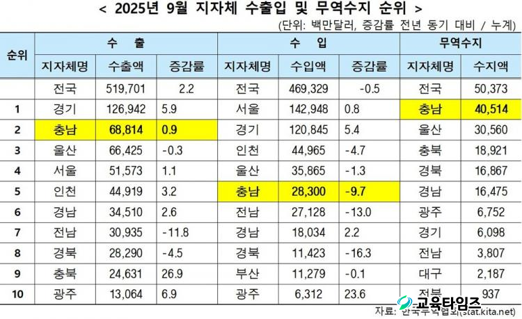 | 2025³â 9¿ù ÁöÀÚü ¼öÃâÀÔ ¹× ¹«¿ª¼öÁö ¼øÀ§ /ÀÚ·á=Ãæ³²µµ Á¦°ø |