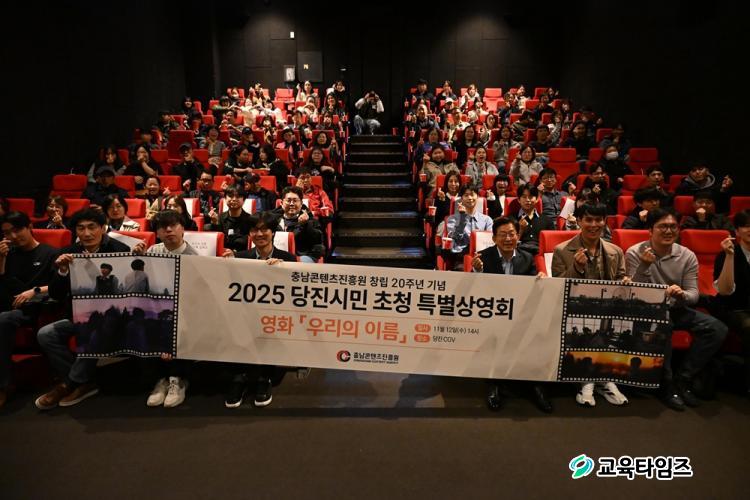 [±³À°Å¸ÀÓÁî/»çȸ] °¡µÎÈ£ ±âÀÚ = Ãæ³²ÄÜÅÙÃ÷ÁøÈï¿ø(¿øÀå ±è°î¹Ì, ÀÌÇÏ ÁøÈï¿ø)ÀÌ Áö³ 11¿ù 12ÀÏ(¼ö) CGV´çÁø¿¡¼ Çѱ¹¿µ»ó´ëÇб³ ÇлçÀåÆí¿µÈ <¿ì¸®ÀÇ À̸§> Ưº°»ó¿µÈ¸¸¦ ¼ºÈ²¸®¿¡ °³ÃÖÇß´Ù. À̹ø »ó¿µÈ¸´Â ÄÜÅÙÃ÷ Á¦ÀÛÁö¿ø »ç¾÷ÀÇ ¼º°ú¸¦ Áö¿ª»çȸ¿Í °øÀ¯Çϰí, ´çÁøÀ» Áß½ÉÀ¸·Î ÇÑ ¿µ»ó»ê¾÷ »ýŰè Ȱ¼ºÈ¸¦ µµ¸ðÇϱâ À§ÇØ ¸¶·ÃµÆ´Ù.
