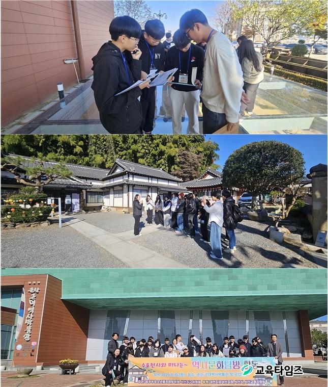 [±³À°Å¸ÀÓÁî/Ãæ³²±³À°] ÇѼºÁø ±âÀÚ = ÃæÃ»³²µµ¼»ê±³À°Áö¿øÃ»(±³À°Àå ±èÁö¿ë)°ú û¼Ò³â¹üÁË¿¹¹æ¼»êÁö±¸À§¿øÈ¸(ȸÀå ±è»ó°ï)¿Í ÇÔ²² Áö³ 15ÀÏ(Åä), °ü³» ÁßÇлý 30¸íÀ» ´ë»óÀ¸·Î '±º»ê ±Ù¡¤Çö´ë»ç ޹æÈ°µ¿'À» ¿î¿µÇß´Ù. À̹ø Çà»ç´Â ÀÏÁ¦°Á¡±âÀÇ ¼öÅ» ÈçÀû°ú ±Ù´ë ¹®ÈÀ¯»êÀÌ °í½º¶õÈ÷ ³²¾ÆÀÖ´Â ±º»ê Áö¿ªÀ» ޹æÇϸç ÇлýµéÀÌ ¿ì¸® ¿ª»ç¸¦ Á÷Á¢ º¸°í ´À³¥ ¼ö ÀÖµµ·Ï ¸¶·ÃµÆ´Ù.