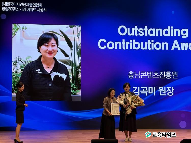 [±³À°Å¸ÀÓÁî/»çȸ] °¡µÎÈ£ ±âÀÚ = Ãæ³²ÄÜÅÙÃ÷ÁøÈï¿ø ±è°î¹Ì ¿øÀåÀÌ 11¿ù 14ÀÏ(±Ý) ÄÚ¿¢½º¿¡¼ ¿¸° Çѱ¹µðÀÚÀδÜüÃÑ¿¬ÇÕȸ(KFDA) 30Áֳ⠱â³ä ½Ã»ó½Ä¿¡¼ ¡®Outstanding Contribution Award(°ø·Î»ó)¡¯À» ¼ö»óÇß´Ù.