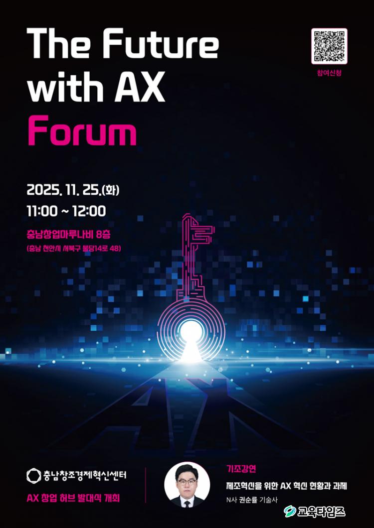 [±³À°Å¸ÀÓÁî/°æÁ¦] °¡µÎÈ£ ±âÀÚ = (Àç)Ãæ³²Ã¢Á¶°æÁ¦Çõ½Å¼¾ÅÍ(ÀÌÇÏ Ãæ³²Çõ½Å¼¾ÅÍ)´Â ¿À´Â 11¿ù 25ÀÏ Ãæ³²Ã¢¾÷¸¶·ç³ªºñ 8Ãþ¿¡¼ ¿ÀÀü 11½ÃºÎÅÍ Áö¿ª AI Àüȯ°ú AX ±â¹Ý â¾÷ Ȱ¼ºÈ¸¦ À§ÇÑ The Future with AX ForumÀ» °³ÃÖÇÑ´Ù°í ¹àÇû´Ù. À̹ø Æ÷·³¿¡¼´Â Ãæ³² AX â¾÷Çãºê À§¿øÈ¸ Ãâ¹ü½ÄÀ» ÇÔ²² ÁøÇàÇϸç, Áö¿ª »ê¾÷ Çõ½Å°ú â¾÷ »ýŰè Ȱ¼ºÈ¸¦ À§ÇÑ Á¤º¸°¡ °øÀ¯µÉ ¿¹Á¤ÀÌ´Ù.