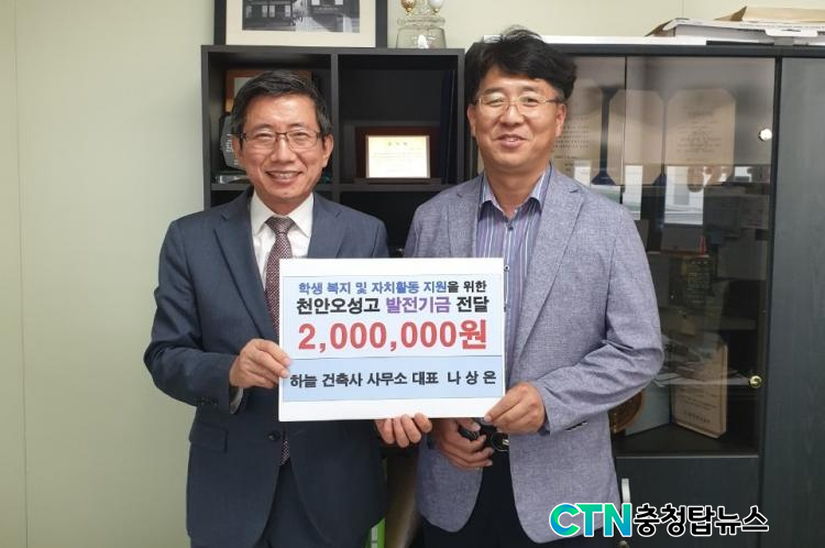 [ÃæÃ»±³À°½Å¹® = ±èÅ¿¬ ±âÀÚ] õ¾È¿À¼º°íµîÇб³(±³Àå Á¶¿µÁ¾)´Â 30ÀÏ Ãµ¾È½Ã µÎÁ¤µ¿¿¡ À§Ä¡ÇÑ ÇϴðÇÃà»ç»ç¹«¼Ò(´ëÇ¥ ³ª»óÀº)·ÎºÎÅÍ Çб³¹ßÀü±â±Ý 200¸¸¿øÀ» ±âŹ ¹Þ¾Ò´Ù.