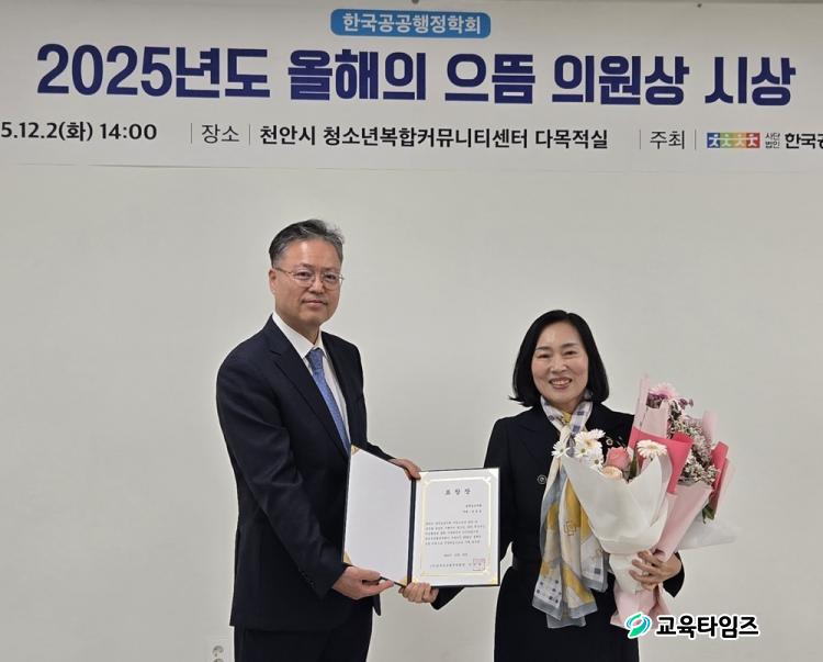 [±³À°Å¸ÀÓÁî/Á¤Ä¡] °¡µÎÈ£ ±âÀÚ = Ãæ³²µµÀÇȸ ½Å¼ø¿Á ÀÇ¿ø(ºñ·Ê¡¤±¹¹ÎÀÇÈû)ÀÌ 2ÀÏ Ãµ¾È½Ãû¼Ò³âº¹ÇÕÄ¿¹Â´ÏƼ¼¾ÅÍ¿¡¼ ¿¸° ¡®2025³â ¿ÃÇØÀÇ À¸¶ä ÀÇ¿ø»ó¡¯À» ¼ö»óÇß´Ù°í ¹àÇû´Ù.