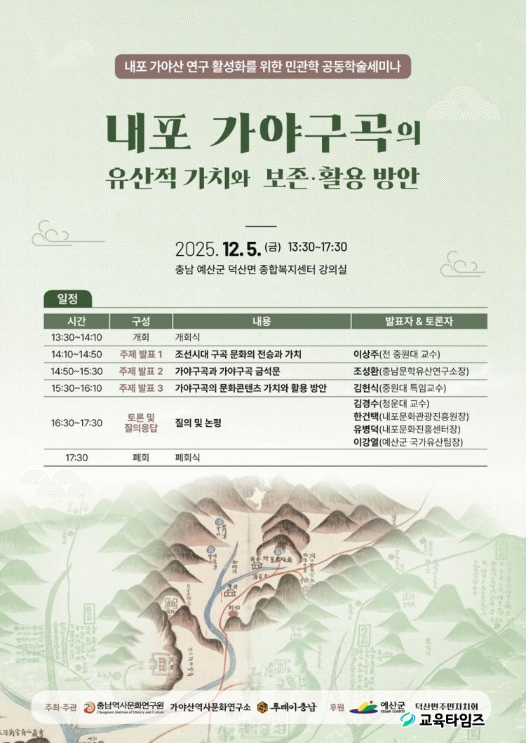 [±³À°Å¸ÀÓÁî/»çȸ] °¡µÎÈ£ ±âÀÚ = Ãæ³²¿ª»ç¹®È¿¬±¸¿ø(¿øÀå Àå±â½Â)°ú °¡¾ß»ê¿ª»ç¹®È¿¬±¸¼Ò°¡ °øµ¿À¸·Î ÁÖÃÖÇÏ´Â ³»Æ÷ °¡¾ß»ê ¿¬±¸ Ȱ¼ºÈ¸¦ À§ÇÑ ¹Î°üÇÐ °øµ¿Çмú¼¼¹Ì³ª°¡ ¿À´Â 12¿ù 5ÀÏ(±Ý)¿¡ ¿ÀÈÄ 13½Ã ¿¹»ê±º ´ö»ê¸é Á¾ÇÕº¹Áö¼¾ÅÍ °Àǽǿ¡¼ °³ÃֵȴÙ.