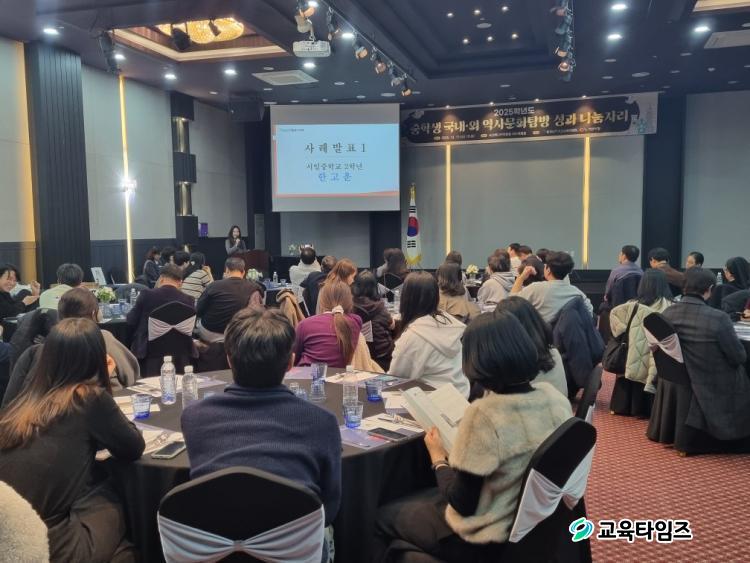 À̹ø Çà»ç´Â 2025³â ÇÑÇØ µ¿¾È ¿î¿µµÈ ÁßÇлý ±¹³»¡¤¿Ü ¿ª»ç¹®È޹æÀÇ ¼º°ú¸¦ °øÀ¯Çϰí, 2026³âµµ Ž¹æ ¿î¿µÀÇ ³»½Çȸ¦ µµ¸ðÇϱâ À§ÇØ ¸¶·ÃµÇ¾ú´Ù. ƯÈ÷ ¼»ê½Ãû Æò»ý±³À°°ú °ü°èÀÚµéÀÌ ÇÔ²² Âü¼®ÇØ, Áö¿ª ÀÎÀç ¾ç¼ºÀ» À§ÇÑ ±³À°Ã»°ú ÁöÀÚü °£ Çù·ÂÀÇ Àǹ̸¦ ´õÇÏ´Â ¶æ±íÀº ÀÚ¸®°¡ µÇ¾ú´Ù.