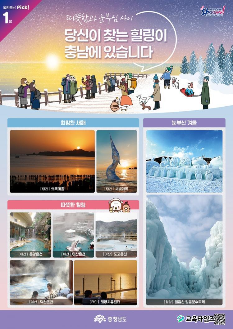 ´õ ¸¹Àº °Ü¿ï ¿©Çà ¸í¼Ò¿Í ÃàÁ¦ Á¤º¸´Â Ãæ³²°ü±¤ ´©¸®Áý(https://tour.chungnam.go.kr/prog/theme/kor/sub01_03_04/list.do) ¶Ç´Â ¿ù°£ Ãæ³² 1¿ùÈ£ Á¤º¸¹«´Ì(QRÄÚµå)¸¦ ÅëÇØ È®ÀÎÇÒ ¼ö ÀÖ´Ù.