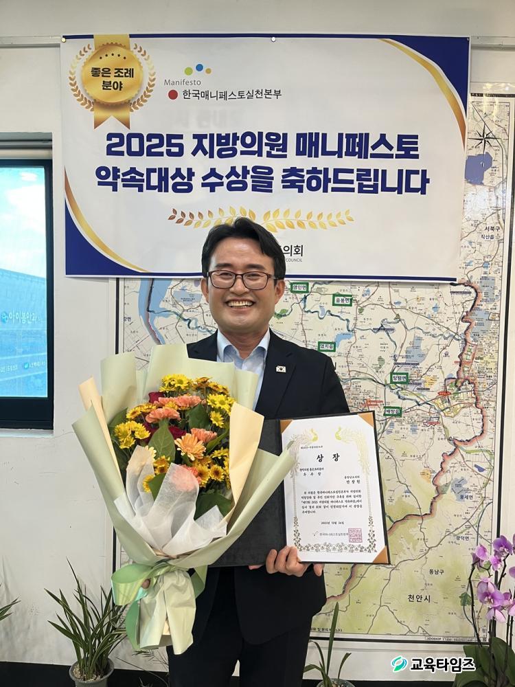 [±³À°Å¸ÀÓÁî/Á¤Ä¡] °¡µÎÈ£ ±âÀÚ = ¾ÈÀåÇå Ãæ³²µµÀÇ¿ø(¾Æ»ê5¡¤´õºÒ¾î¹ÎÁÖ´ç)ÀÌ 2025 ¸Å´ÏÆä½ºÅä ¾à¼Ó´ë»ó ÁÁÀºÁ¶·ÊºÐ¾ß ¿ì¼ö»óÀ» ¼ö»óÇϸç, ±×°£ÀÇ ÀÇÁ¤È°µ¿ ¼º°ú¸¦ Á¾ÇÕÀûÀ¸·Î ÀÎÁ¤¹Þ¾Æ ¡®6°ü¿Õ¡¯À» ´Þ¼ºÇß´Ù.