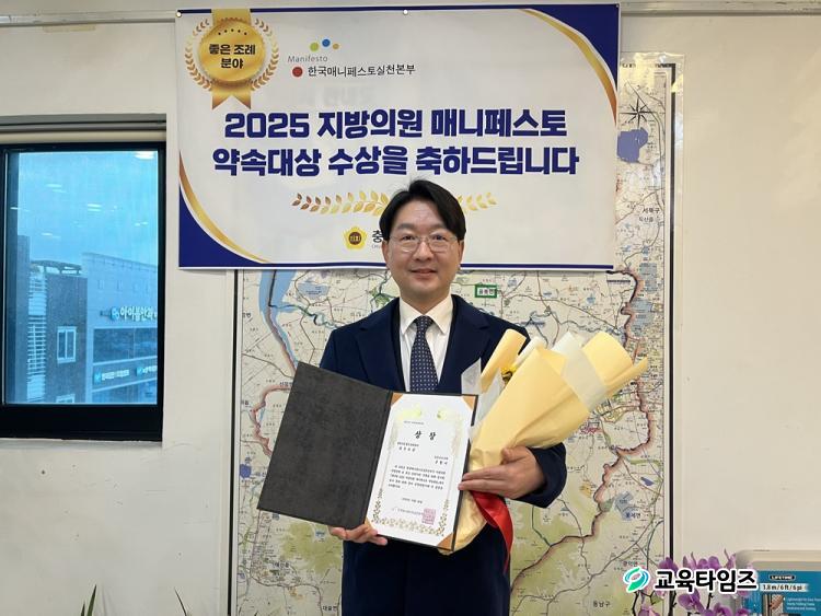[±³À°Å¸ÀÓÁî/Á¤Ä¡] °¡µÎÈ£ ±âÀÚ = ÃæÃ»³²µµÀÇȸ ±¸Çü¼ ÀÇ¿ø(õ¾È4¡¤´õºÒ¾î¹ÎÁÖ´ç)ÀÌ 2025 ¸Å´ÏÆä½ºÅä ¾à¼Ó´ë»ó¿¡¼ ÁÁÀºÁ¶·ÊºÐ¾ß ÃÖ¿ì¼ö»óÀ» ¼ö»óÇß´Ù. À̹ø ¼ö»óÀ¸·Î ±¸ ÀÇ¿øÀº ¸Å´ÏÆä½ºÅä ¾à¼Ó´ë»óÀ» ¼¼ Â÷·Ê ¼ö»óÇÑ À¯ÀÏÇÑ Ãæ³²µµÀÇ¿øÀ¸·Î À̸§À» ¿Ã¸®¸ç, Áö¼ÓÀûÀÎ ÀÔ¹ý ¼º°ú¿Í Á¤Ã¥ ½ÇÈ¿¼ºÀ» ´Ù½Ã Çѹø ÀÎÁ¤¹Þ¾Ò´Ù.