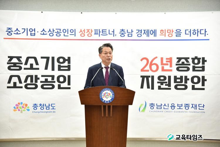 [±³À°Å¸ÀÓÁî/°æÁ¦] °¡µÎÈ£ ±âÀÚ = Ãæ³²½Å¿ëº¸ÁõÀç´Ü(ÀÌ»çÀå Á¶¼ÒÇà, ÀÌÇÏ Ãæ³²½Åº¸)Àº 27ÀÏ ¿ÀÀü 11½Ã, µµÃ» ÇÁ·¹½º¼¾ÅÍ¿¡¼ ¾ð·Ðºê¸®ÇÎÀ» ¿°í ¡¸2026³â Áß¼Ò±â¾÷¡¤¼Ò»ó°øÀÎ Á¾ÇÕÁö¿ø ¹æ¾È¡¹À» ¹ßÇ¥Çß´Ù.