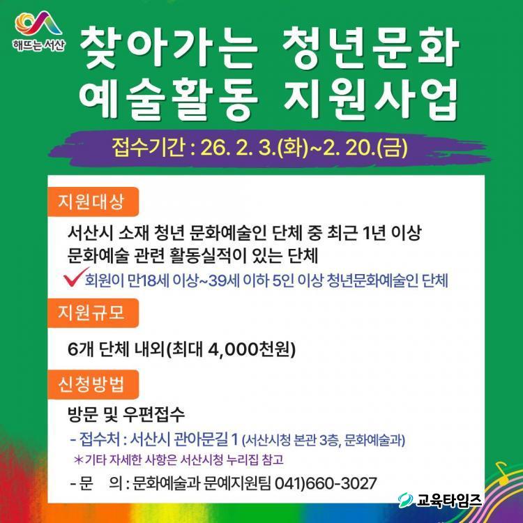 [±³À°Å¸ÀÓÁî/Ãæ³²] ÇѼºÁø ±âÀÚ = Ãæ³² ¼»ê½Ã´Â û³â ¹®È¿¹¼ú Ȱ¼ºÈ¸¦ À§ÇØ ¿À´Â 2¿ù 20ÀϱîÁö '2026³â ã¾Æ°¡´Â û³â¹®È ¿¹¼úȰµ¿ Áö¿ø»ç¾÷' Âü¿©´Üü 6ÆÀÀ» ¸ðÁýÇÑ´Ù°í ¹àÇû´Ù.