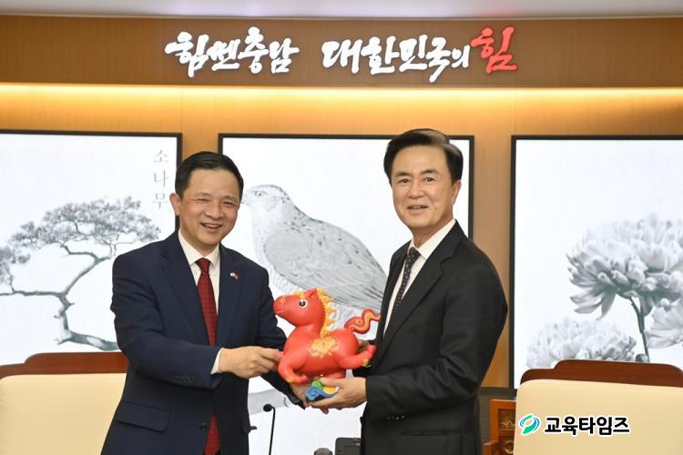 [±³À°Å¸ÀÓÁî/Ãæ³²] °¡µÎÈ£ ±âÀÚ = ±èÅÂÈì Ãæ³²µµÁö»ç´Â 6ÀÏ µµÃ» Á¢°ß½Ç¿¡¼ ´ÙÀ̺ù(Óãܲ) ÁÖÇÑ Áß±¹´ë»ç¿Í ¸¸³ª ¾ç Áö¿ª °£ ±³·ù¡¤Çù·Â È®´ë ¹æ¾ÈÀ» ³íÀÇÇß´Ù.