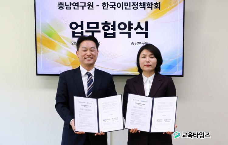 [±³À°Å¸ÀÓÁî/»çȸ] °¡µÎÈ£ ±âÀÚ = Ãæ³²¿¬±¸¿ø(¿øÀå ÀüÈñ°æ)°ú Çѱ¹À̹ÎÁ¤Ã¥ÇÐȸ(ȸÀå ÀÓµ¿Áø)°¡ 25ÀÏ Ãæ³²¿¬±¸¿ø¿¡¼ ¾÷¹«Çù¾à(MOU)À» ü°áÇϰí, Àα¸±¸Á¶ Àüȯ°ú Áö¿ª ¼Ò¸ê À§±â¿¡ ´ëÀÀÇϱâ À§ÇÑ Á¤Ã¥¡¤Çмú Çù·ÂÀ» º»°ÝÈÇϱâ·Î Çß´Ù.