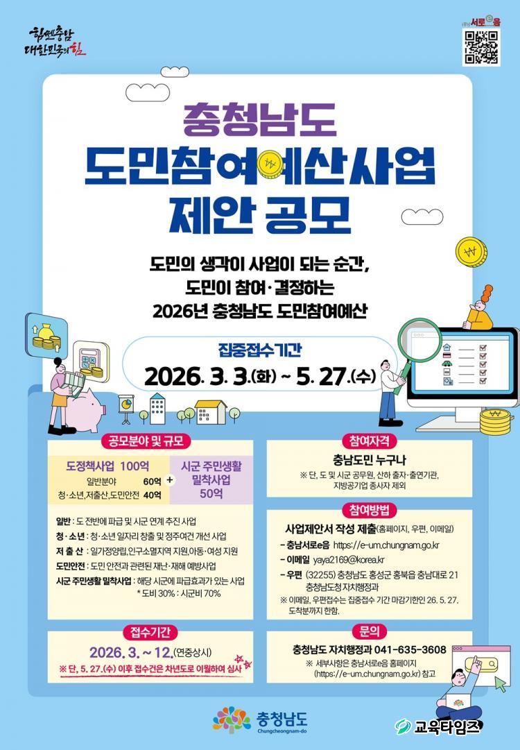 [±³À°Å¸ÀÓÁî/Ãæ³²] °¡µÎÈ£ ±âÀÚ = Ãæ³²µµ´Â 3¿ù 3ÀϺÎÅÍ 5¿ù 27ÀϱîÁö 2027³â ¿¹»ê¾È¿¡ ¹Ý¿µÇÒ ¡®µµ¹ÎÂü¿©¿¹»ê Á¦¾È»ç¾÷¡¯ ÁýÁß Á¢¼ö±â°£À» ¿î¿µÇÑ´Ù°í 26ÀÏ ¹àÇû´Ù.