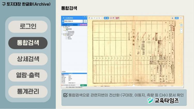 Áö³ 4³â°£ ±¸ÃàÇÑ ¿¾ ÅäÁö´ëÀå ÇѱÛÈ¡¤Àü»êÈ´Â ÀÏÁ¦°Á¡±â ÀÛ¼ºµÈ 313¸¸ 6000ÀåÀÇ ÅäÁö´ëÀåÀ» Çѱ۷Πº¯È¯¡¤µðÁöÅÐÈÇØ ±â·Ï¹° ³ëÈÄÈ¡¤ÈÑ¼Õ ¹®Á¦¸¦ ÇØ¼ÒÇϰí ÇÑÀÚ ¹× ÀϺ»½Ä Ç¥±â·Î ÀÎÇÑ µµ¹Î ºÒÆíÀ» °³¼±ÇÏ´Â µ¥ ÁßÁ¡À» µ×´Ù.