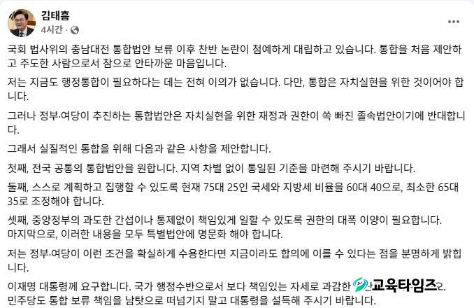[±³À°Å¸ÀÓÁî/Ãæ³²] °¡µÎÈ£ ±âÀÚ = ±èÅÂÈì Ãæ³²µµÁö»ç°¡ ÇàÁ¤ÅëÇÕ°ú °ü·ÃÇØ ÀçÁ¤°ú ±ÇÇÑ ´ëÆø À̾çÀ» ´ãÀº Àü±¹ °øÅëÀÇ ÅëÇÕ¹ý¾ÈÀÌ ÇÊ¿äÇÏ´Ù°í ´Ù½Ã ÇÑ ¹ø °Á¶ÇÏ°í ³ª¼¹´Ù.