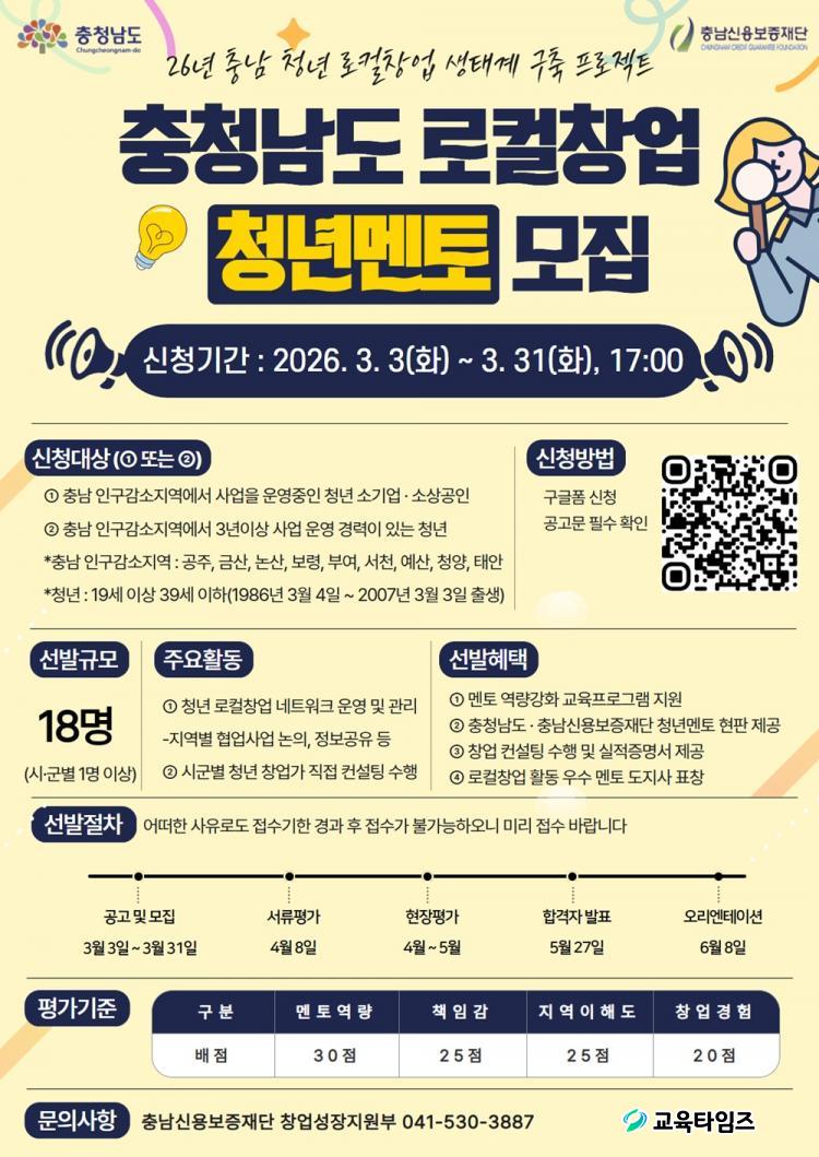 ¸ðÁý ±â°£Àº ¿À´Â 31ÀϱîÁöÀ̸ç, °øÁÖ¡¤º¸·É¡¤³í»ê¡¤±Ý»ê¡¤ºÎ¿©¡¤¼Ãµ¡¤Ã»¾ç¡¤¿¹»ê¡¤ÅÂ¾È µî Àα¸°¨¼ÒÁö¿ª¿¡¼ â¾÷ ¿¹Á¤ÀΠû³â ¿¹ºñâ¾÷°¡ ¹× 3³â À̳» Ãʱâ â¾÷°¡¶ó¸é ½ÅûÇÒ ¼ö ÀÖ´Ù.
