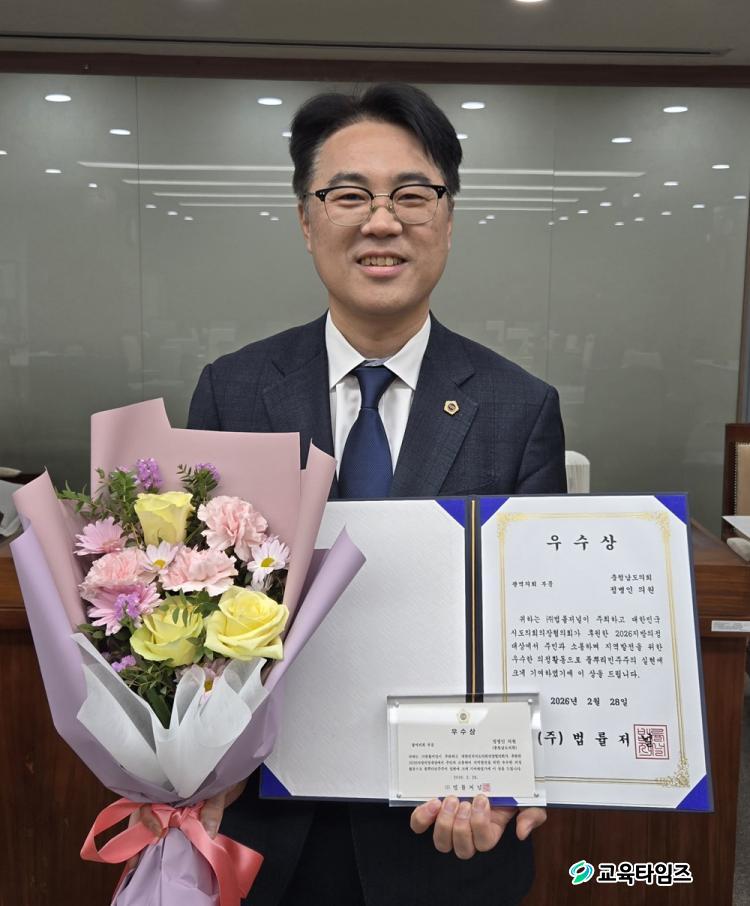 [±³À°Å¸ÀÓÁî/Á¤Ä¡] °¡µÎÈ£ ±âÀÚ = Ãæ³²µµÀÇȸ Á¤º´ÀÎ ÀÇ¿ø(õ¾È8¡¤´õºÒ¾î¹ÎÁÖ´ç)Àº ¹ý·üÀú³ÎÀÌ ÁÖÃÖÇÑ ¡®2026 Áö¹æÀÇÁ¤´ë»ó¡¯¿¡¼ ¿ì¼ö»óÀ» ¼ö»óÇß´Ù°í 9ÀÏ ¹àÇû´Ù.