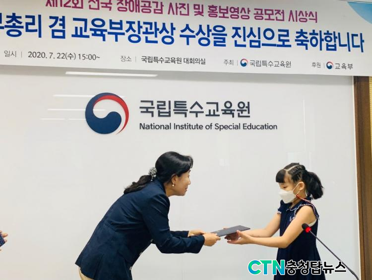[ÃæÃ»±³À°½Å¹® = Á¶¼ºÂù ±âÀÚ] ±Ý°îÃʵîÇб³(±³Àå ¹é¼ø´ö) 2Çгâ ÀüÁö¿ø ÇлýÀÌ Á¦12ȸ Àü±¹ Àå¾Ö°ø°¨ Àå¾ÖÇлý »çÁø ºÎ¹® °ø¸ðÀü¿¡ Âü°¡ÇÏ¿© ¿µ¿¹ÀÇ ´ë»óÀ» ¼ö»óÇß´Ù.