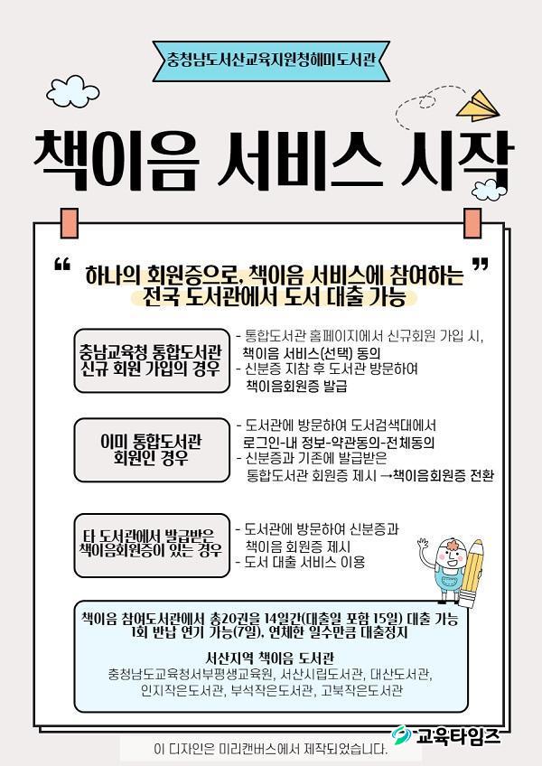 Ã¥ÀÌÀ½ ¼ºñ½º´Â µµ¼°ü¸¶´Ù º°µµÀÇ È¸¿øÁõÀ» ¸¸µé¾î¾ß ÇÏ´Â ºÒÆíÀ» ÇØ¼ÒÇϰíÀÚ 2010³âºÎÅÍ ±¹¸³Áß¾Óµµ¼°ü°ú Àü±¹ÀÇ °ø°øµµ¼°üÀÌ Çù·ÂÇϰí ÀÖ´Â »ç¾÷ÀÌ´Ù. Ã¥ÀÌÀ½ ¼ºñ½º¿¡ °¡ÀÔÇÑ ÀÌ¿ëÀÚ´Â ÇØ¹Ìµµ¼°üÀº ¹°·Ð ÃæÃ»³²µµ±³À°Ã»¼ºÎÆò»ý±³À°¿ø, ¼»ê½Ã¸³µµ¼°ü, ´ë»êµµ¼°ü, ÀÎÁöÀÛÀºµµ¼°ü, ºÎ¼®ÀÛÀºµµ¼°ü, °íºÏÀÛÀºµµ¼°ü¿¡¼µµ µµ¼ ´ëÃâÀÌ °¡´ÉÇÏ´Ù.