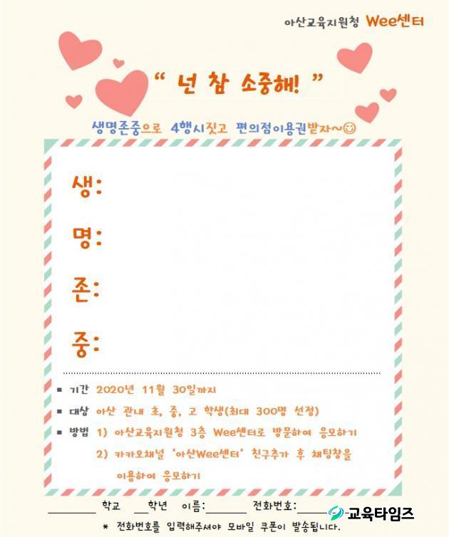 Ä·ÆäÀÎÀÇ ÁÖ¿ä ³»¿ëÀº '»ý¸íÁ¸Áß 4Çà½Ã Áþ±â'·Î ¾Æ»ê °ü³» ÃÊ,Áß,°í ÇлýÀÌ¸é ´©±¸³ª Âü¿©ÇÒ ¼ö ÀÖ´Ù. ÀÀ¸ð ¹æ¹ýÀº īī¿ÀÅå '¾Æ»ê Wee¼¾ÅÍ'°Ë»öÇÏ¿© Ä£±¸Ãß°¡¸¦ ÇÑ ÈÄ 4Çà½Ã ³»¿ëÀ» äÆÃâ¿¡ ÀÔ·ÂÇÏ¸é °¡´ÉÇÏ´Ù. ÀÀ¸ð¸¦ ÇÏ¸é ÆíÀÇÁ¡ »óǰ±Ç 3õ¿ø±ÇÀ» ¹ÞÀ» ¼ö ÀÖ¾î¼ Çлýµé »çÀÌ¿¡¼ ÀαⰡ ¶ß°Ì´Ù°í ÇÑ´Ù.