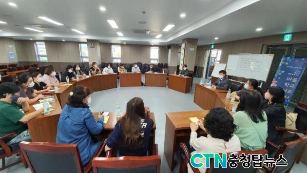 [ÃæÃ»±³À°½Å¹® = ¹æ¹ÌÈñ ±âÀÚ] ÁøÁÖ±³À°Áö¿øÃ»(±³À°Àå ÇãÀμö)Àº Áö³ 21ÀÏ ÁøÁÖÇູ±³À°Áö±¸°¡ Áö¿øÇÏ´Â ¸¶À»Çб³ ´ëÇ¥¿Í ¸¶À»Çб³È°µ¿°¡, ÁøÁÖ±³À°Áö¿øÃ» Á÷¿øµéÀ̰ú ¹Ì·¡±³À°¿¡ ´ëÇØ ÇÔ²² °í¹ÎÇÏ°í ¼ÒÅëÇÏ´Â ¸¶À»Çб³ Á¤Ã¥ÇùÀÇȸ¸¦ ¿¾ú´Ù.