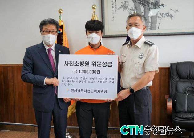 »çõ±³À°Áö¿øÃ»¿¡¼´Â »çõ¼Ò¹æ¼¸¦ ¹æ¹®ÇÏ¿© ´ë¹ÎÁö¿ø ¹× ±¸È£ Ȱµ¿¿¡ Èû¾²´Â ¼Ò¹æ°ø¹«¿ø°ú ¼Ò¹æ¿øÀÇ ³ë°í¸¦ °Ý·ÁÇϰí À§¹®±ÝÀ» Àü´ÞÇß´Ù.