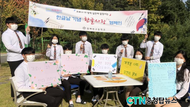 [ÃæÃ»±³À°½Å¹® = ¹Úö¿ì ±âÀÚ] ±¤Çý¿ø°íµîÇб³(±³Àå Ãֽü±)´Â Á¦574µ¹ Çѱ۳¯À» ¸Â¾Æ 8ÀÏ(¸ñ) ±³³»¿¡¼ Çѱۻç¶û Ä·ÆäÀÎÀ» ½Ç½ÃÇß´Ù°í ¹àÇû´Ù.
