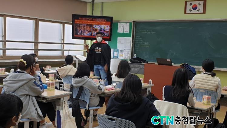 [CTN ÃæÃ»±³À°½Å¹® = À̺´Á¾ ±âÀÚ] ÁøÃµ¿©ÀÚÁßÇб³(±³Àå ³ë¿µÀÓ)´Â Áö³ 20ÀÏ ¿ø¾î¹Î ¼±»ý´Ôµé°ú 1Çгâ ÇлýµéÀÌ ÇÒ·ÎÀ© ¹®È¸¦ Á÷Á¢ üÇèÇÏ´Â ½Ã°£À» °¡Á³´Ù.
