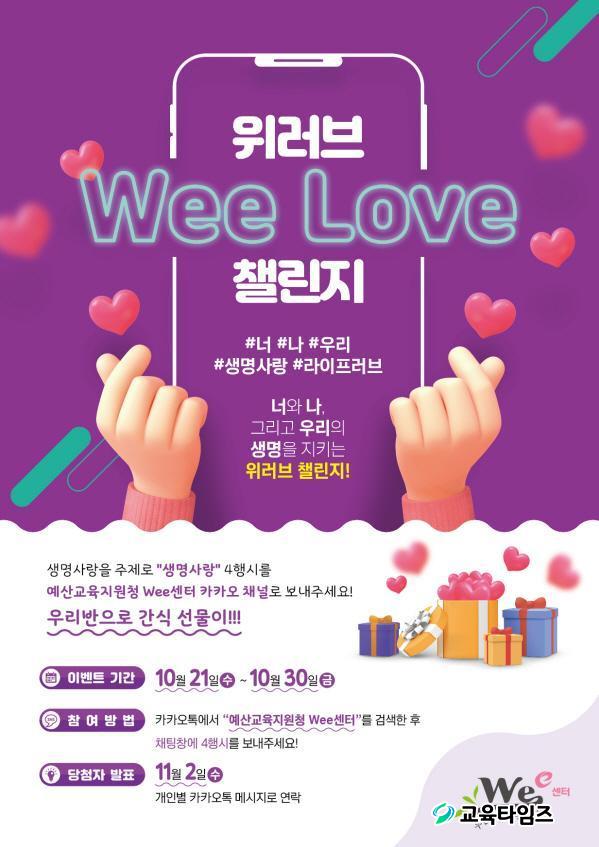 [CTN ÃæÃ»±³À°½Å¹® = ÃÖ¿ë°ü ±âÀÚ] ¿¹»ê±³À°Áö¿øÃ» Wee¼¾ÅÍ´Â 10¿ù 21ÀϺÎÅÍ 10¿ù 30ÀϱîÁö 10Àϰ£ °ü³» ÃÊ¡¤Áß¡¤°í ÇлýÀ» ´ë»óÀ¸·Î À§·¯ºê(WeeLove)縰Áö¸¦ °³ÃÖÇÑ´Ù.