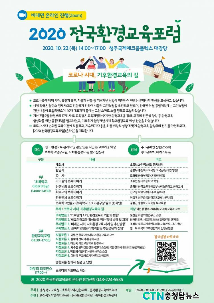 [CTN ÃæÃ»±³À°½Å¹® = ¹Úö¿ì ±âÀÚ] ÃæÃ»ºÏµµÀÚ¿¬°úÇб³À°¿ø(¿øÀå ¹ÚÀçȯ)Àº 10¿ù 22ÀÏ(¸ñ) ¿ÀÈÄ 2½Ã ÁÜ(ZOOM)°ú ÃæºÏ±³À°Ã»À¯Æ©ºê(Youtube)¿¡¼ ºñ´ë¸é ¿Â¶óÀÎ Àü±¹È¯°æ±³À°Æ÷·³À» ÁÖ°üÇß´Ù.
