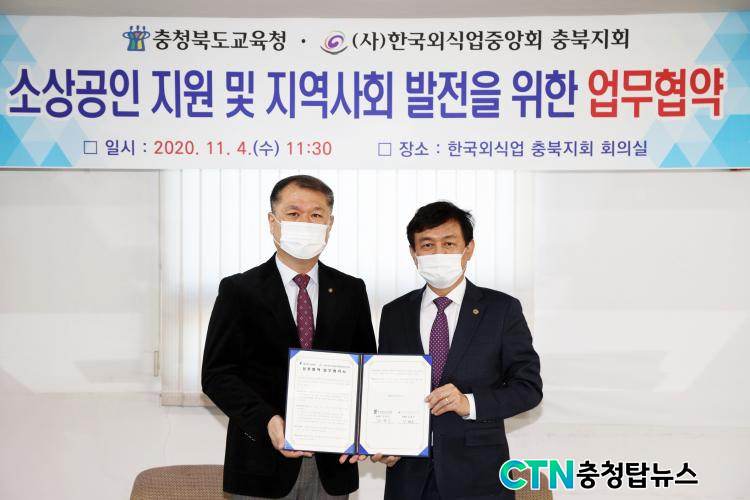 [CTN ÃæÃ»±³À°½Å¹® = ¹Úö¿ì ±âÀÚ] ÃæÃ»ºÏµµ±³À°Ã»(±³À°°¨ ±èº´¿ì)°ú Çѱ¹¿Ü½Ä¾÷Áß¾Óȸ ÃæºÏÁöȸ(ȸÀå ±èŰï)´Â 11¿ù 4ÀÏ(¼ö) ¿ÀÀü 11½Ã 30ºÐ Çѱ¹¿Ü½Ä¾÷Áß¾Óȸ ÃæºÏÁöȸ¿¡¼ ¼Ò»ó°øÀÎ Áö¿ø°ú Áö¿ª»çȸ ¹ßÀüÀ» À§ÇÑ ¾÷¹«Çù¾àÀ» ü°áÇß´Ù.