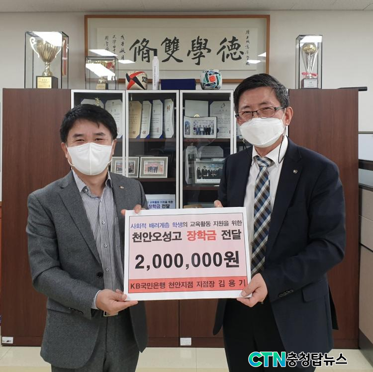 õ¾È¿À¼º°í, KB±¹¹ÎÀºÇà ÀåÇÐ±Ý 200¸¸¿ø ±âŹ ¹Þ¾Æ