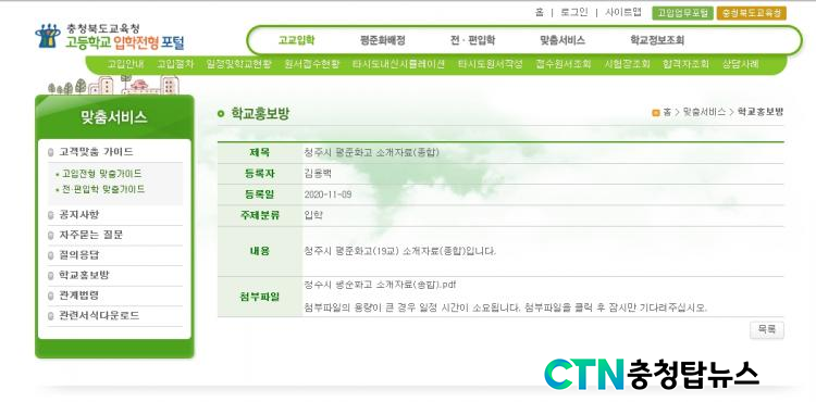 [CTN ÃæÃ»±³À°½Å¹® = ¹Úö¿ì ±âÀÚ] ÃæÃ»ºÏµµ±³À°Ã»(±³À°°¨ ±èº´¿ì)Àº ÇлýµéÀÌ ÆòÁØÈ°íµîÇб³¸¦ ¼±ÅÃÇÒ ¶§ µµ¿òÀ» ÁÖ°íÀÚ '2021Çг⵵ ÃæÃ»ºÏµµ±³À°°¨ ÀüÇü °íµîÇб³(ÆòÁØÈ°í) ¼±Åà µµ¿òÀÚ·á' ¸¦ ¿Â¶óÀÎÀ¸·Î Á¦°øÇϰí ÀÖ´Ù.