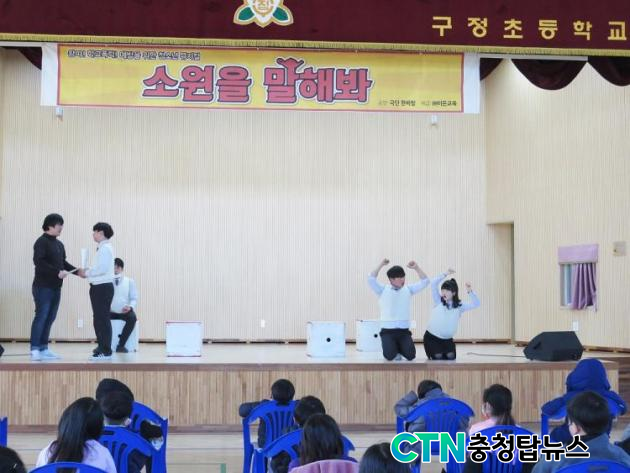 [CTN ÃæÃ»±³À°½Å¹® = À̺´Á¾ ±âÀÚ] ±¸Á¤ÃʵîÇб³(±³Àå È«¶õ¼ö)´Â Áö³ 11ÀÏ Àü±³»ý 65¸íÀ» ´ë»óÀ¸·Î µû¶æÇÑ »ç¶ûÀ» ÀüÇÏ´Â ¹ÂÁöÄà '¼Ò¿øÀ» ¸»ÇغÁ' °ø¿¬À» °ü¶÷Çß´Ù.