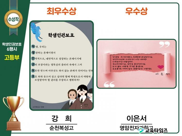 [CTN ÃæÃ»±³À°½Å¹® = Çϼº¸Å ±âÀÚ] Àü¶ó³²µµ±³À°Ã»(±³À°°¨ Àå¼®¿õ)ÀÌ ¿À´Â 12¿ù 10ÀÏ '¼¼°èÀαǼ±¾ð' ±â³äÀÏÀ» ¸Â¾Æ ½Ç½ÃÇÑ 'ÇлýÀαǺ¸È£ È«º¸ °ø¸ðÀü'¿¡¼ ÃÖÁ¾ 3°³ ºÐ¾ß 40ÆÀ 68¸íÀÇ ¼ö»óÀÚ°¡ ¼±Á¤µÆ´Ù.