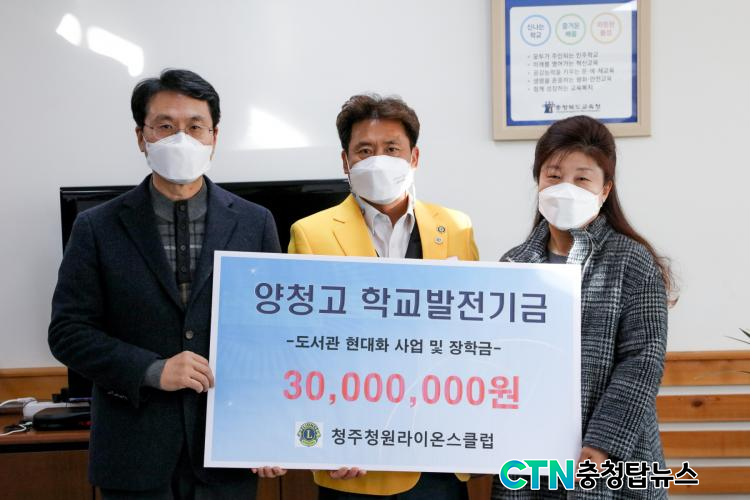 [CTN ÃæÃ»±³À°½Å¹® = ¹Úö¿ì ±âÀÚ] ¾çû°íµîÇб³(±³Àå ±èÁ¾·Ä)°¡ ûÁÖû¿ø¶óÀ̿½ºÅ¬·´(ȸÀå ¹ÚÁ¤Èñ)ÀÌ 12¿ù 16ÀÏ(¼ö) ¾çû°í¿¡ Çб³¹ßÀü±â±Ý 3000¸¸¿øÀ» ±âŹÇß´Ù°í ¹àÇû´Ù.