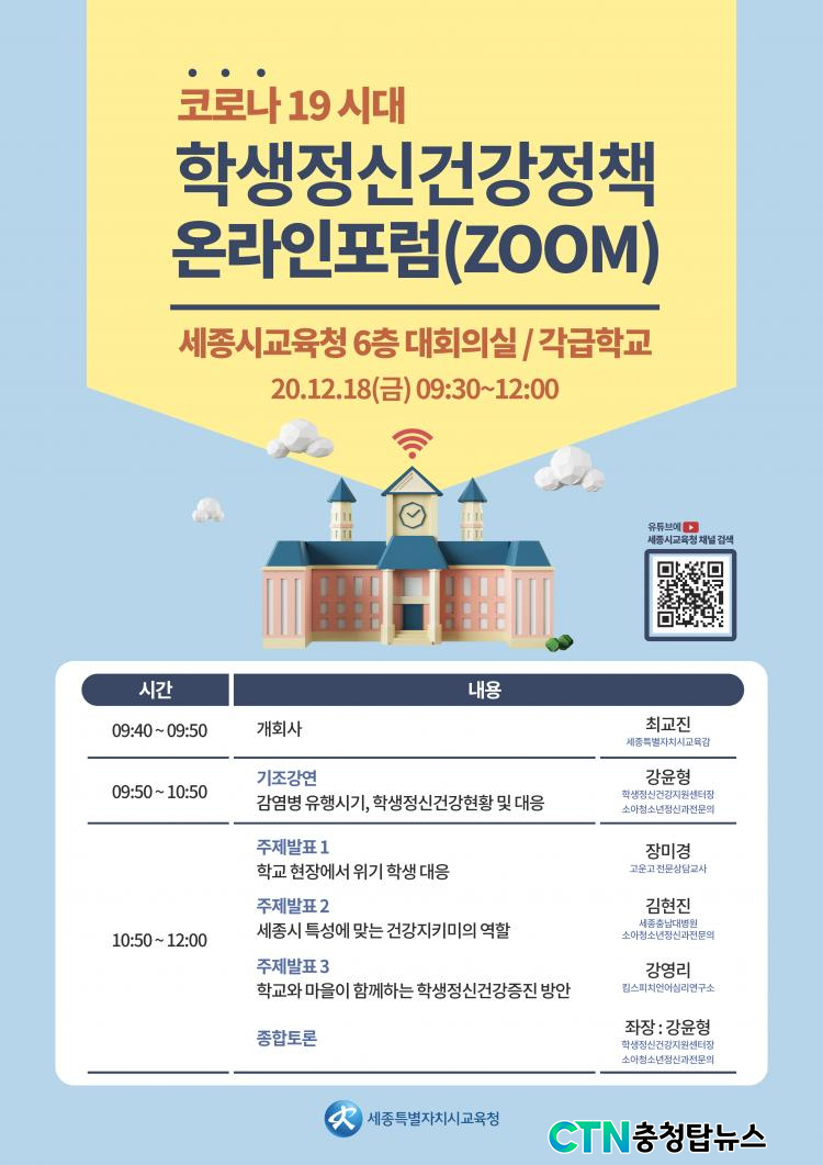 [CTN ÃæÃ»±³À°½Å¹® = Á¤¹ÎÁØ ±âÀÚ] ¼¼Á¾Æ¯º°ÀÚÄ¡½Ã±³À°Ã»(±³À°°¨ ÃÖ±³Áø, ÀÌÇÏ ¼¼Á¾½Ã±³À°Ã»)Àº ¿À´Â 18ÀÏ ¡®Äڷγª19 ½Ã´ë Çлý Á¤½Å°Ç° Á¤Ã¥ ºñ´ë¸é °ø°³Åä·Ðȸ(Æ÷·³)¡¯À» °³ÃÖÇÑ´Ù.