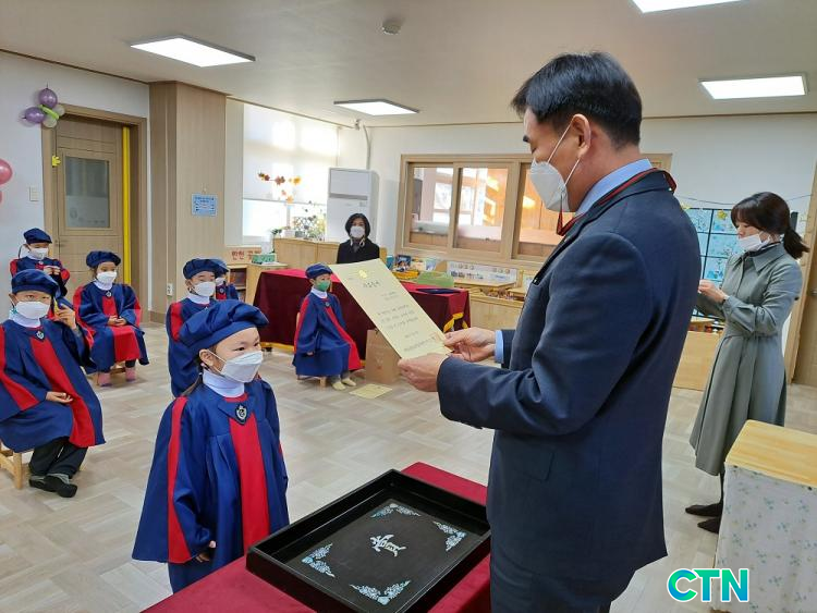 [CTN ÃæÃ»±³À°½Å¹® = À̺´Á¾ ±âÀÚ] ÁøÃµ ÇÑõÃʵîÇб³º´¼³À¯Ä¡¿ø(¿øÀå ¼°¼®)Àº 8ÀÏ(±Ý)¿¡ À¯Ä¡¿ø»ý 17¸í°ú ±³»çµé¸¸ÀÌ Âü¼®ÇÑ °¡¿îµ¥ 2020Çг⵵ Á¹¾÷½ÄÀ» ÁøÇàÇß´Ù.