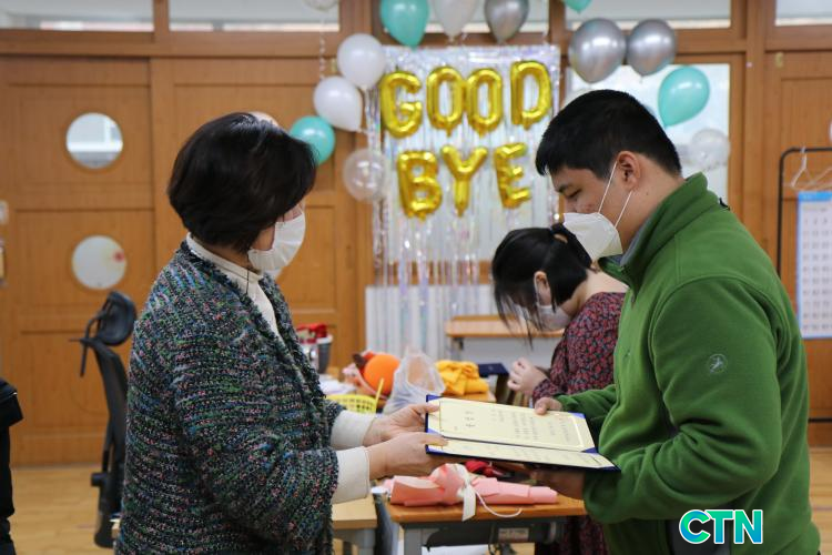 Çлýȸ ºÎȸÀåÀÎ Àü°ø°ú 2Çгâ ÃÖ±âÁ¾ ÇлýÀº Çϱ·±æ¿¡ ¼±»ý´Ô ÇÑ ºÐ ÇÑ ºÐÀ» ¾È¾Æµå¸®¸ç "¼±»ý´Ô ±×µ¿¾È °¨»çÇß½À´Ï´Ù"¶ó°í Àλ縻À» ÀüÇØ ÁÖº¯ »ç¶÷µé ¸¶À½À» ¹¶Å¬ÇÏ°Ô Çß´Ù. Á¹¾÷Àº '³¡ÀÌ ¾Æ´Ñ »õ·Î¿î ½ÃÀÛ'À̶ó´Â ¸»Ã³·³ ÇлýµéÀº ¾Æ½¬¿î ¹ß°ÉÀ½À» µ¹¸®¸é¼µµ »õ·Î¿î ½ÃÀÛ¿¡ ´ëÇÑ ±â´ë¸¦ ¾È°í Çб³¸¦ ¶°³µ´Ù.