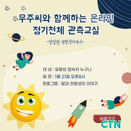 1¿ù 21ÀÏ(¸ñ)Àº ¹ãÇϴÿ¡ ´Þ°ú õ¿Õ¼ºÀÌ 3.4µµ Á¤µµ·Î ±ÙÁ¢ÇÏ´Â ³¯·Î '´Þ´ÞÇÑ Ãµ¿Õ¼ºÀ̾߱â' ¶ó´Â ÁÖÁ¦·Î ÁøÇàÇϸç, Âü¿©ÇÏ´Â ÃæºÏµµ¹Î¿¡°Ô ¿ìÁÖ¿¡ ´ëÇÑ ¸¹Àº Á¤º¸¸¦ Àü´ÞÇÒ ¿¹Á¤ÀÌ´Ù.