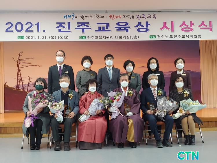 [CTN ÃæÃ»±³À°½Å¹® = ¹æ¹ÌÈñ ±âÀÚ] ÁøÁÖ±³À°Áö¿øÃ»(±³À°Àå ÇãÀμö)Àº 21ÀÏ 3Ãþ ´ëȸÀǽǿ¡¼ ÁøÁÖ±³À° ¹ßÀü¿¡ Çå½ÅÇÑ ¼¼ ¸íÀÇ ¼ö»óÀÚ¿¡ ´ëÇÑ '2021.ÁøÁÖ±³À°»ó ½Ã»ó½Ä'À» °³ÃÖÇß´Ù.