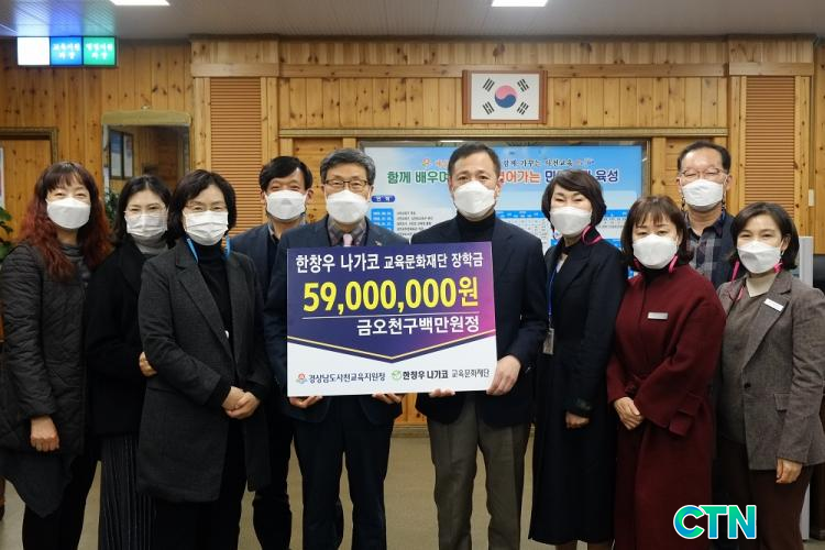 [CTN ÃæÃ»±³À°½Å¹® = ¹æ¹ÌÈñ ±âÀÚ] »çõ±³À°Áö¿øÃ»(±³À°Àå ±è¹ý°ï)Àº ¿À´Â 26ÀÏ »çõ±³À°Áö¿øÃ» ±³À°Àå½Ç¿¡¼ ÇÑâ¿ì³ªÄ«ÄÚ ±³À°¹®ÈÀç´ÜÀ¸·ÎºÎÅÍ ÃÑ5900¸¸¿øÀÇ ÀåÇбÝÀ» Àü´Þ¹Þ¾Ò´Ù.