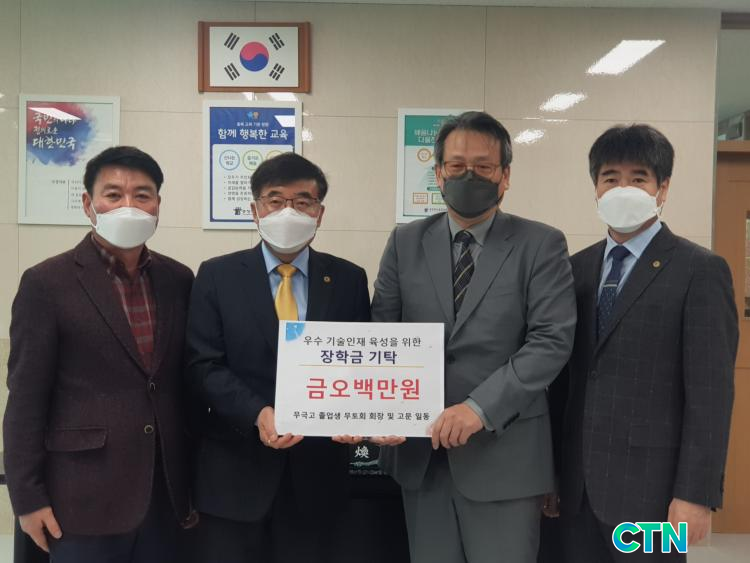 [CTN ±³À°½Å¹® = ¹Úö¿ì ±âÀÚ] ÃæºÏ¹ÝµµÃ¼°íµîÇб³(±³Àå ±è¹Îȯ)Àº 2¿ù 22ÀÏ(¿ù) ¹«±Ø°íµîÇб³ Á¹¾÷»ýÀ¸·Î ±¸¼ºµÈ ¹«Åäȸ¿¡¼ Çлý ÀåÇÐ±Ý ¿À¹é¸¸¿øÀ» ±âŹ ¹Þ¾Ò´Ù.