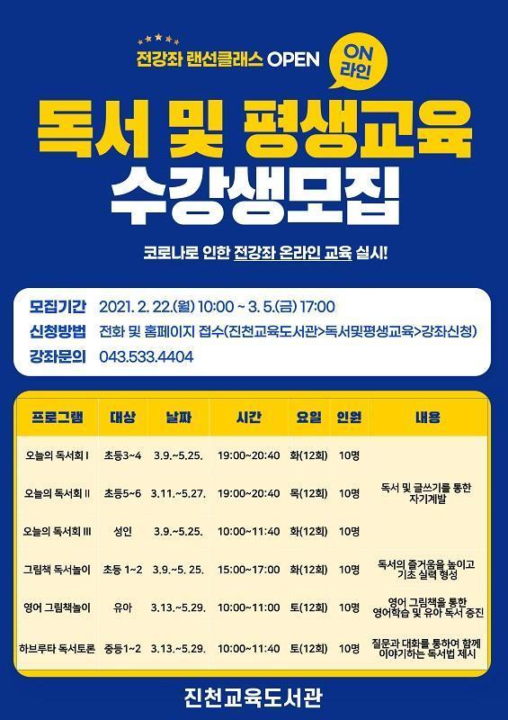 ÁøÃµ±³À°µµ¼°üÀº Ãʵî3~6Çгâ°ú Çкθð ¹× ¼ºÀÎÀ» ´ë»óÀ¸·Î ÇÔ²² µ¶¼ÇÏ°í »ý°¢À» ³ª´©´Â ¡¸¿À´ÃÀÇ µ¶¼È¸I~III¡¹, µ¶¼ÀÇ Áñ°Å¿òÀ» ³ôÀÌ°í ±âÃÊ ½Ç·ÂÀ» Çü¼ºÇÏ´Â Ãʵî 1~2Çг⠡¸±×¸²Ã¥ µ¶¼³îÀÌ¡¹, À¯¾ÆÀÇ ¿µ¾îÇнÀÀ» À§ÇÑ ¡¸¿µ¾î±×¸²Ã¥³îÀÌ¡¹, Áú¹®°ú ´ëȸ¦ ÅëÇÏ¿© ÇÔ²² À̾߱âÇÏ´Â ¡¸Áßµî ÇϺê·çŸ µ¶¼Åä·Ð¡¹ µîÀÇ ¿¬·Éº° ´Ù¾çÇÑ ÇÁ·Î±×·¥À» °³¼³Çß´Ù. ¸ðµç ÇÁ·Î±×·¥Àº ¿Â¶óÀÎ °ÀÇ Ç÷§Æû 'ZOOM' ÇÁ·Î±×·¥À» Ȱ¿ëÇÏ¿© ½Ç½Ã°£À¸·Î °»ç¿Í ¼ö°»ýÀÌ ¼ÒÅëÇÏ´Â ¹æ½ÄÀ¸·Î ÁøÇàµÈ´Ù.