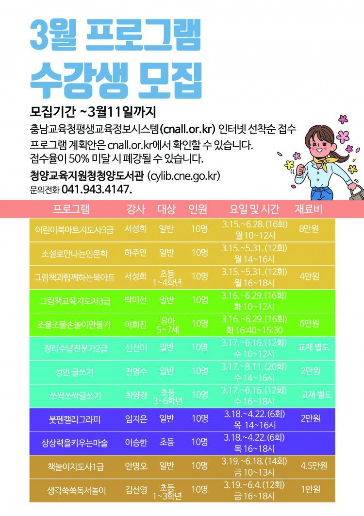 3¿ù ÇÁ·Î±×·¥Àº ÀϹݰÁ ¡ã¾î¸°ÀÌºÏ¾ÆÆ®3±ÞÀÚ°ÝÁõ ¡ã¼Ò¼³·Î¸¸³ª´ÂÀι®ÇÐ ¡ã±×¸²Ã¥±³À°ÁöµµÀÚ3±ÞÀÚ°ÝÁõ ¡ãÁ¤¸®¼ö³³Àü¹®°¡2±ÞÀÚ°ÝÁõ ¡ã¼ºÀα۾²±â ¡ãº×ÆæÄ¶¸®±×¶óÇÇ ¡ãÃ¥³îÀÌÁöµµ»ç1±ÞÀÚ°ÝÁõ 7Á¾, ¾î¸°À̰Á ¡ãÁ¶¹°Á¶¹°¼Õ³îÀθ¸µé±â ¡ã¾²½Ï¾²½Ï±Û¾²±â ¡ã»ó»ó·ÂÀ»Å°¿ì´Â¸¶¼ú ¡ã»ý°¢¾¦¾¦µ¶¼³îÀÌ 4Á¾, ÃÑ 11Á¾À̸ç ÀÚ¼¼ÇÑ °Àǰèȹ¾ÈÀº Ãæ³²±³À°Ã»Æò»ý±³À°Á¤º¸½Ã½ºÅÛ(cnall.or.kr)´©¸®Áý ȤÀº û¾çµµ¼°ü ´©¸®Áý¿¡¼ È®ÀÎÇÒ ¼ö ÀÖ´Ù.